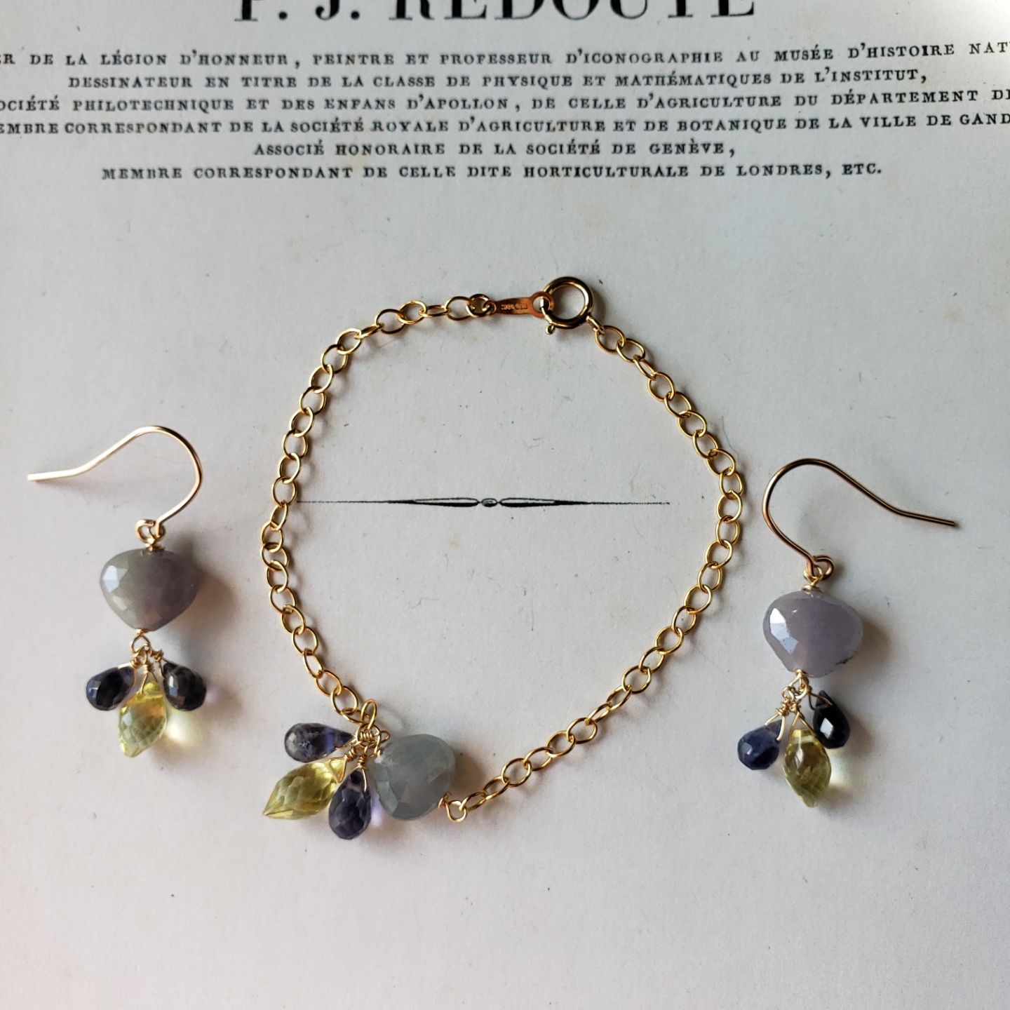 ミルキーサファイヤにアイオライトとレモンクオーツをあしらい、